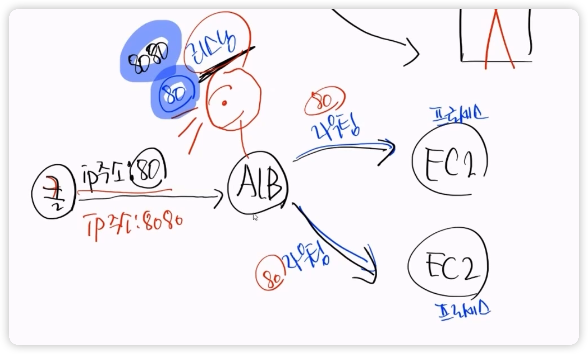 클라이언트 입장에서는 EC2 A와 B 2개 중에 어디로 접속해야할지 모릅니다. 그래서 ALB(애플리케이션 로드밸런서)로 접근한다음