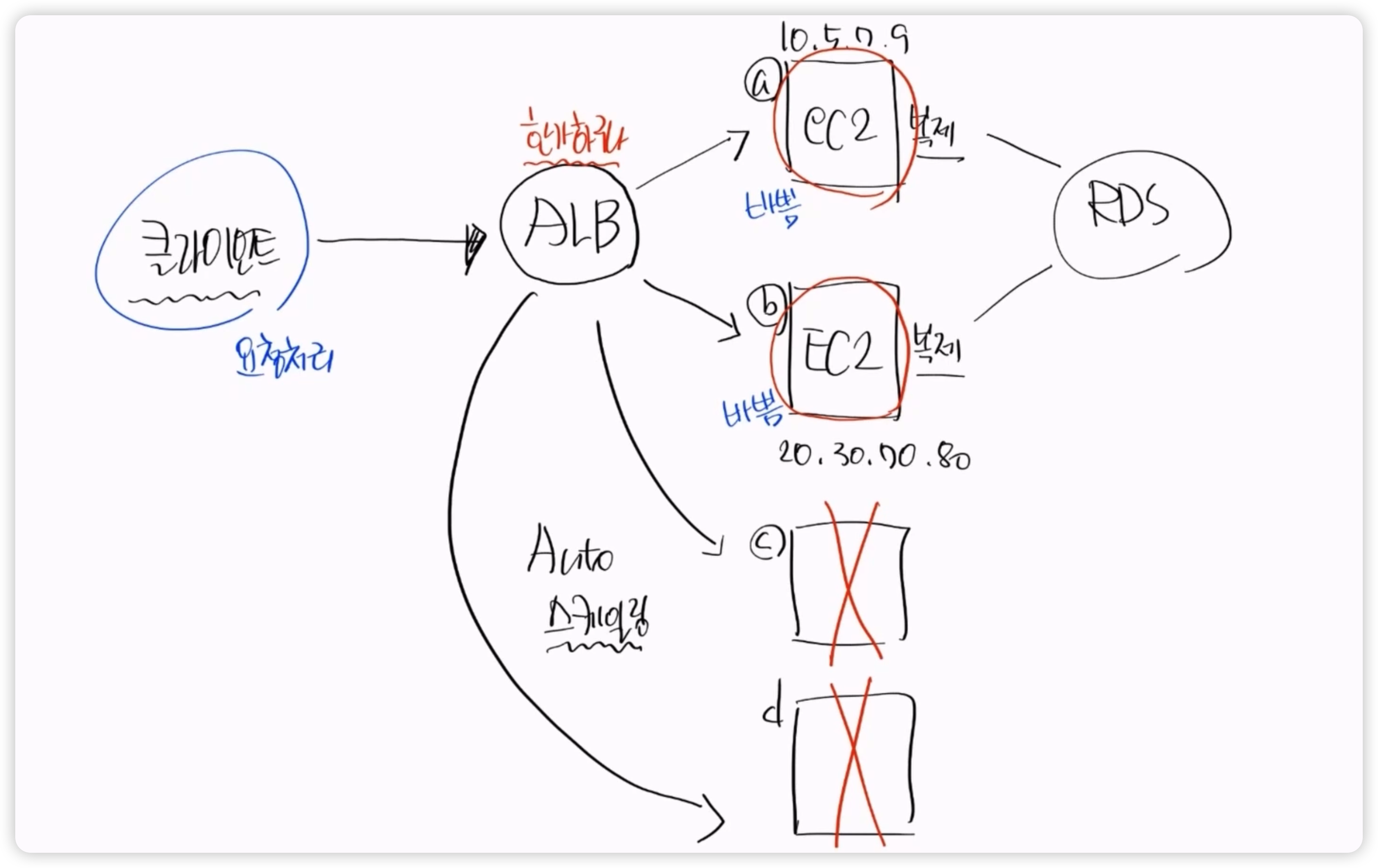 이때, 서버 2개가 다 바쁘다고 한다면 서버 C와 D를 자동으로 늘려줘서 접근을 시켜줍니다.(오토스케일링)