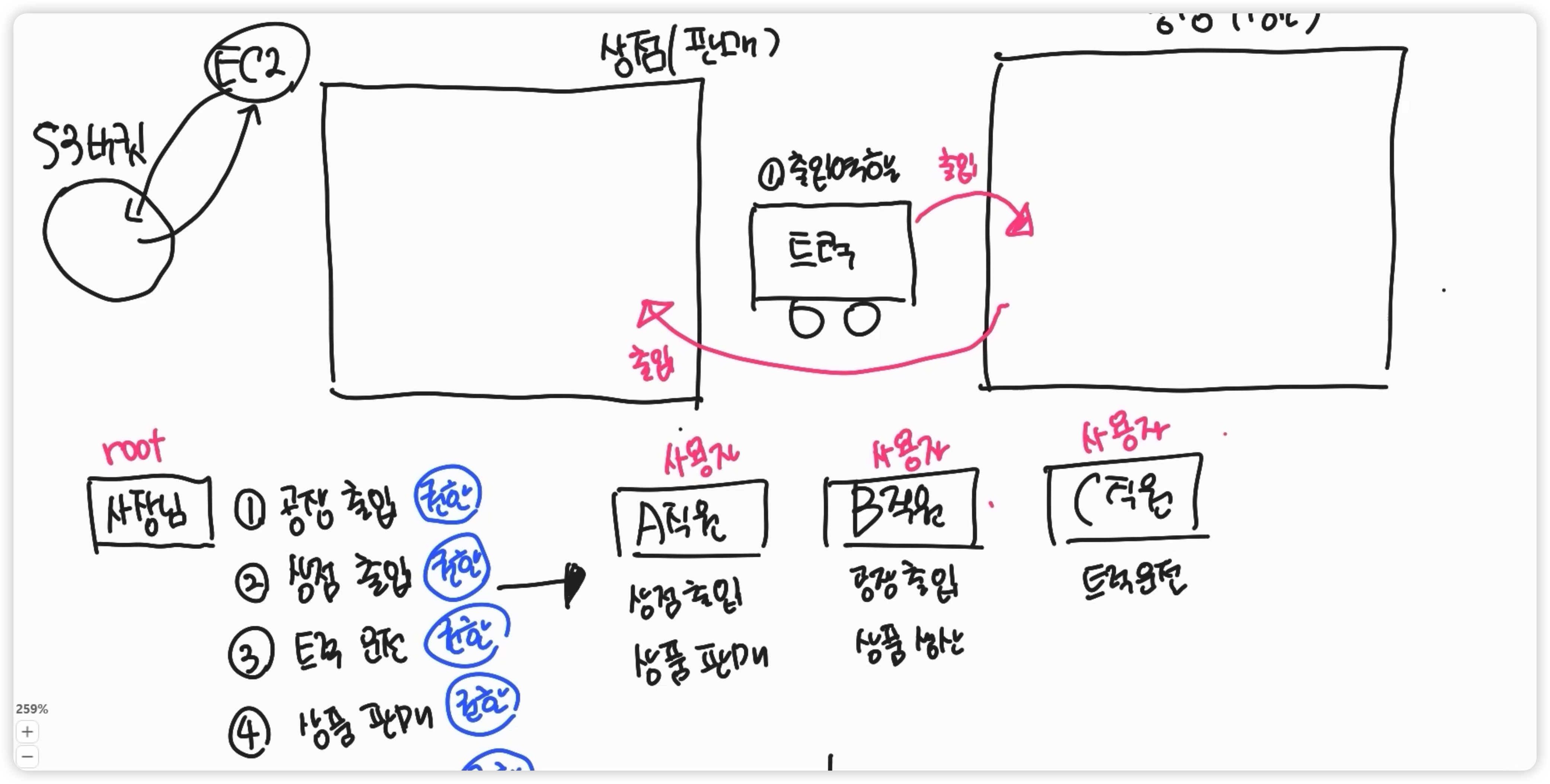 - 역할: 권한의 모임(임시로 정책처럼 만들어서 서비스에 부여한다. 사용자가 아닌 서비스에 부여한다.)