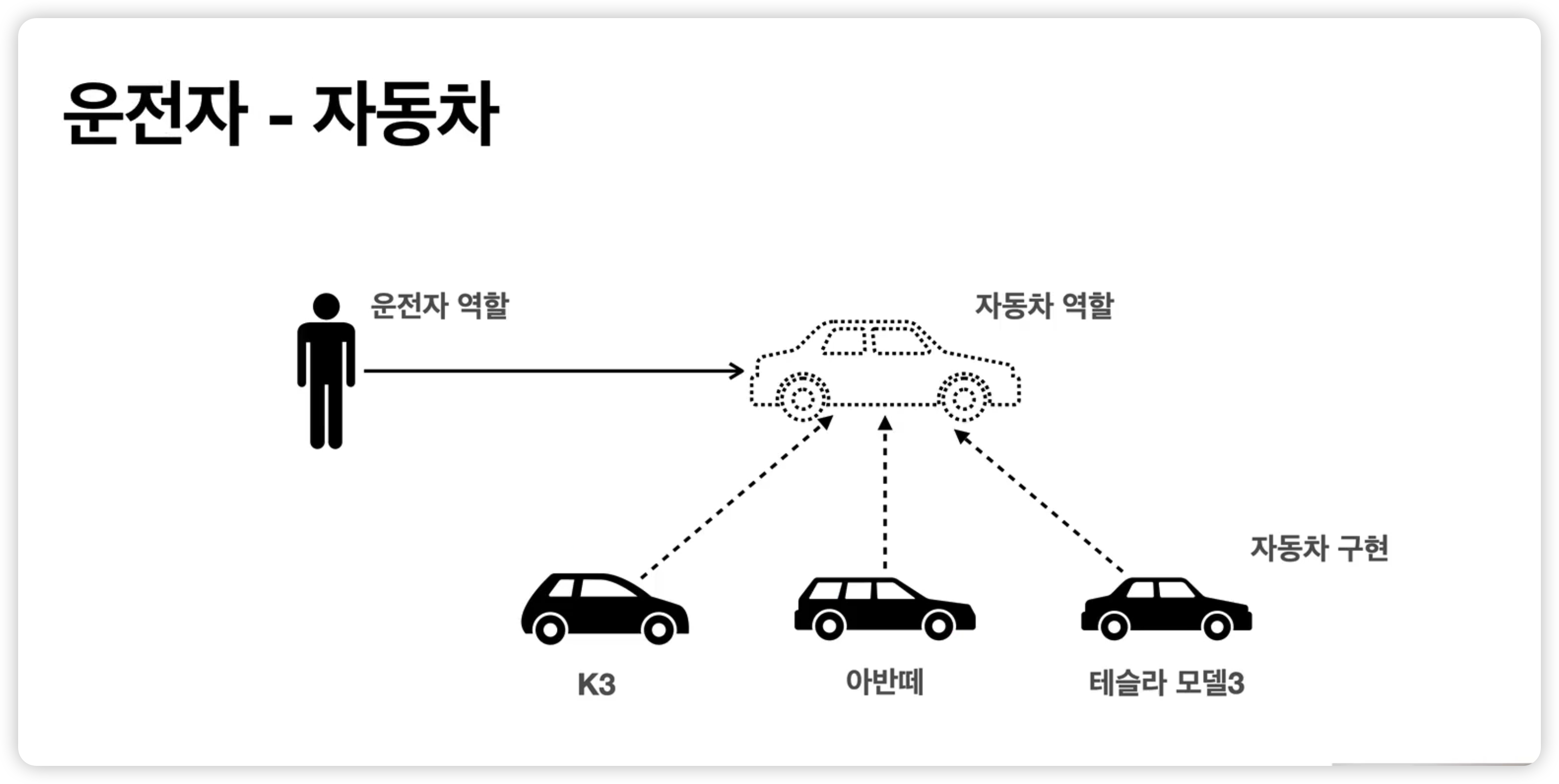 - 애플리케이션 설계도 공연을 설계하듯이 배역만 만들어두고, 배우는 언제든지 유연하게 변경할 수 있도록 만드는 것이 좋은 객체 지향 설계이다.