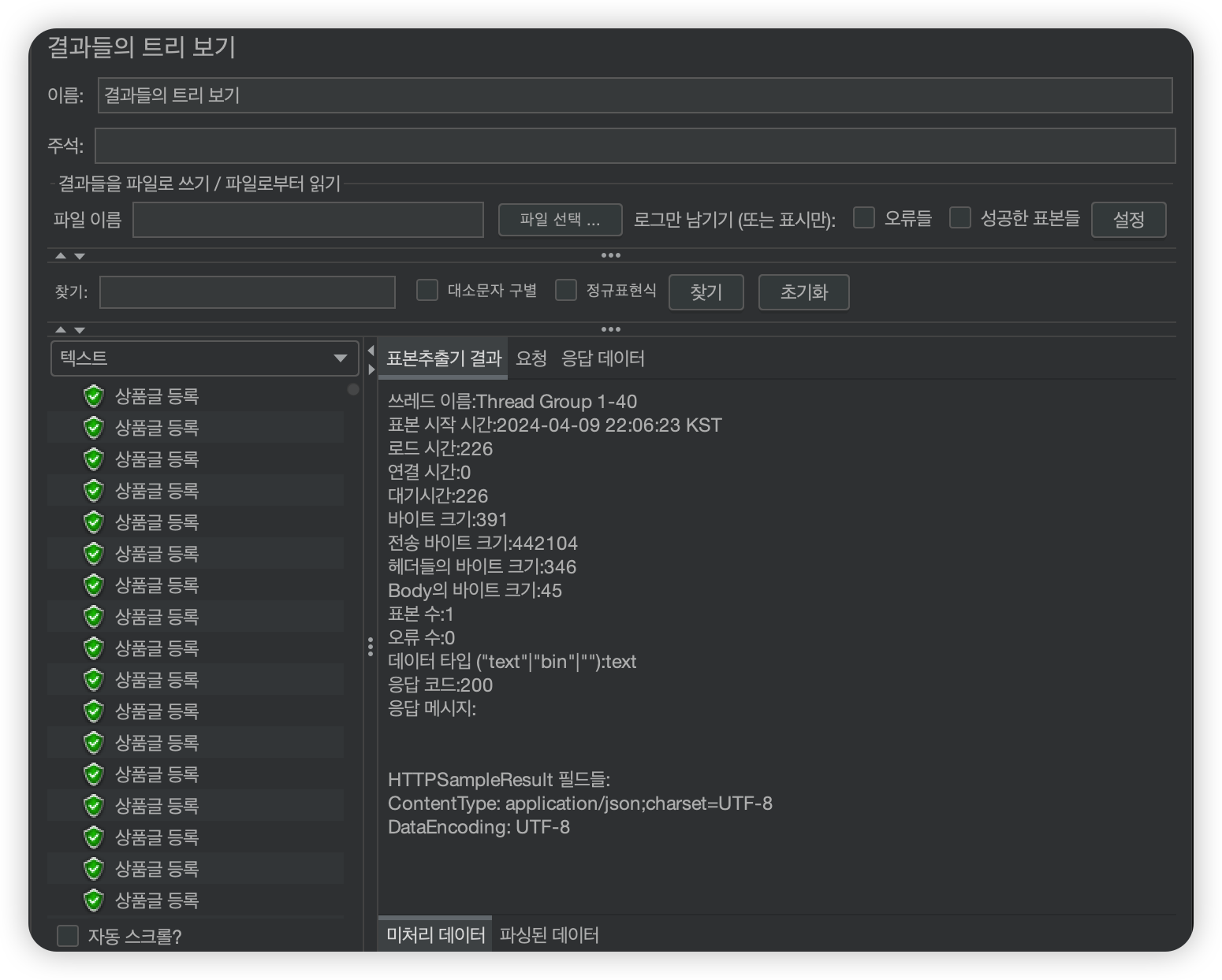 - Assertion : 응답 결과의 성공 여부를 판단하는 조건 (응답 코드, 본문 내용 등)