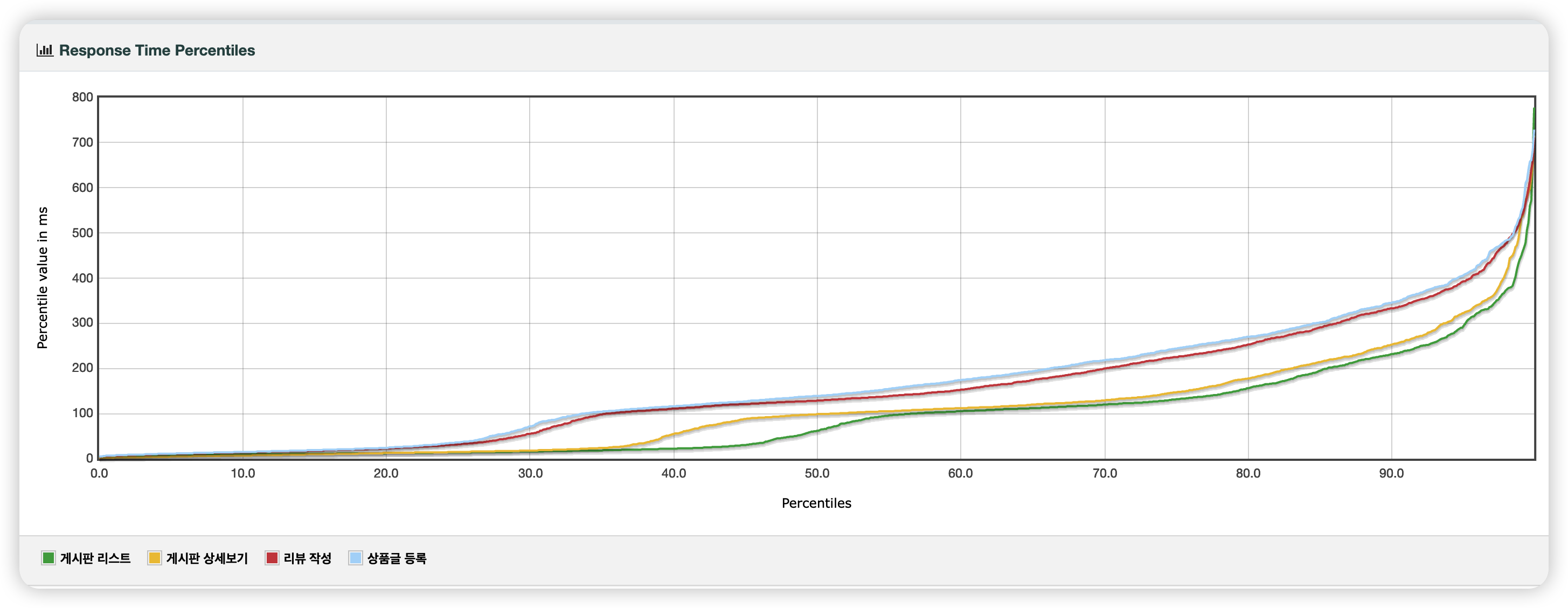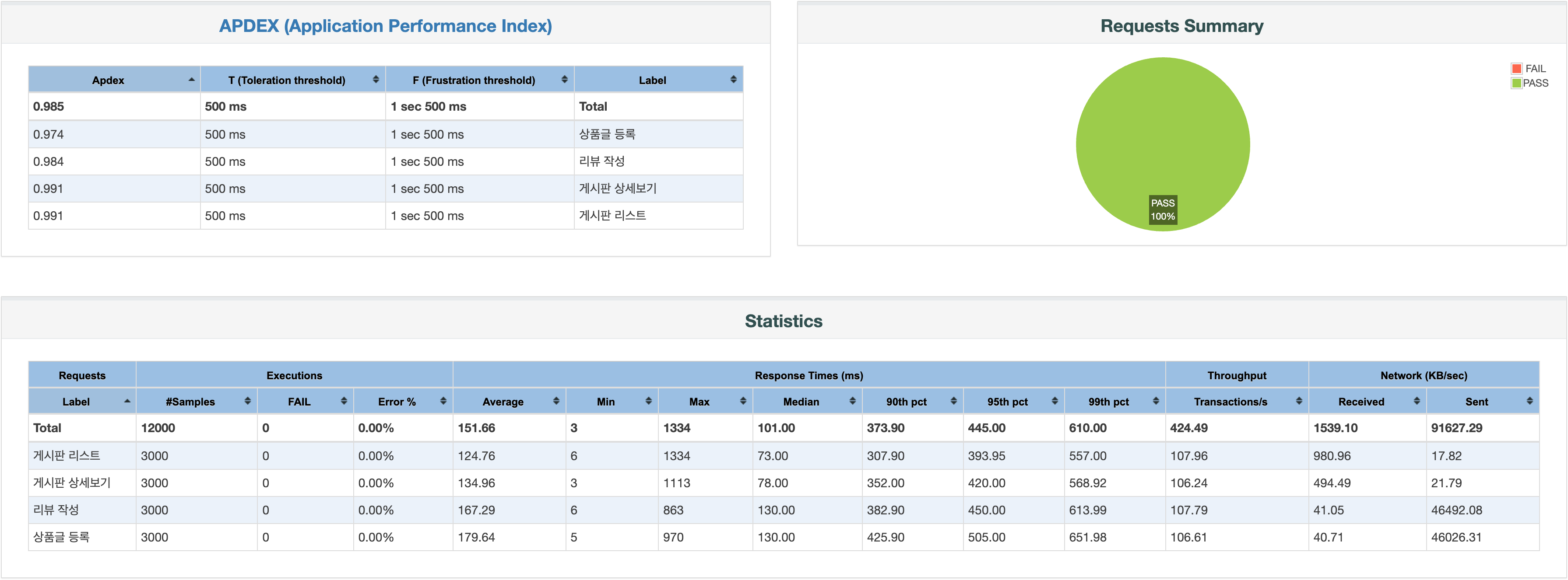 - 오류 0%는 HTTP 응답 코드로 판단합니다. 예외에 해당하는 400번대 또는 500번대의 응답이 없었음을 예상할 수 있습니다.