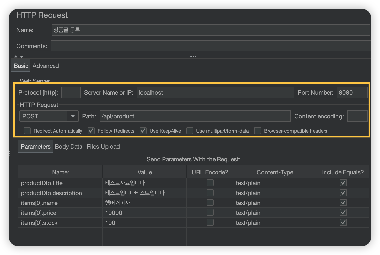 3. 테스트할 HTTP Request를 생성해준다.