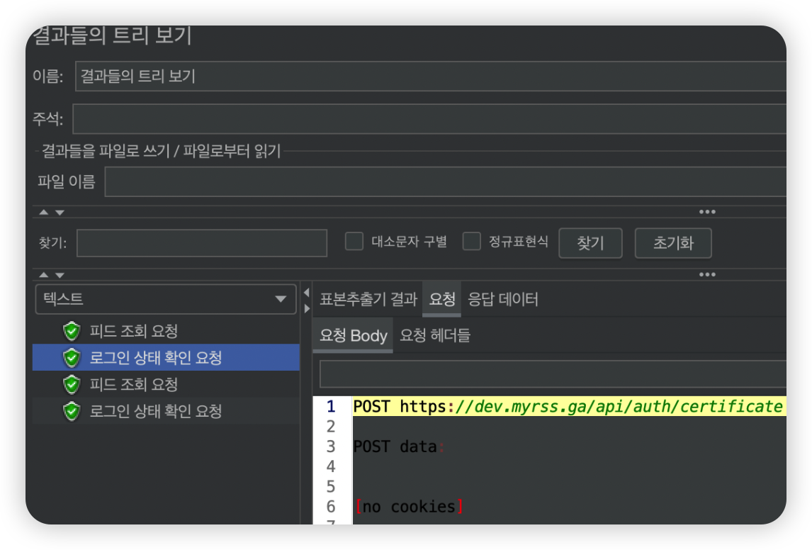 - 개별 요청에 대한 요청, 응답 정보를 확인할 수 있습니다.